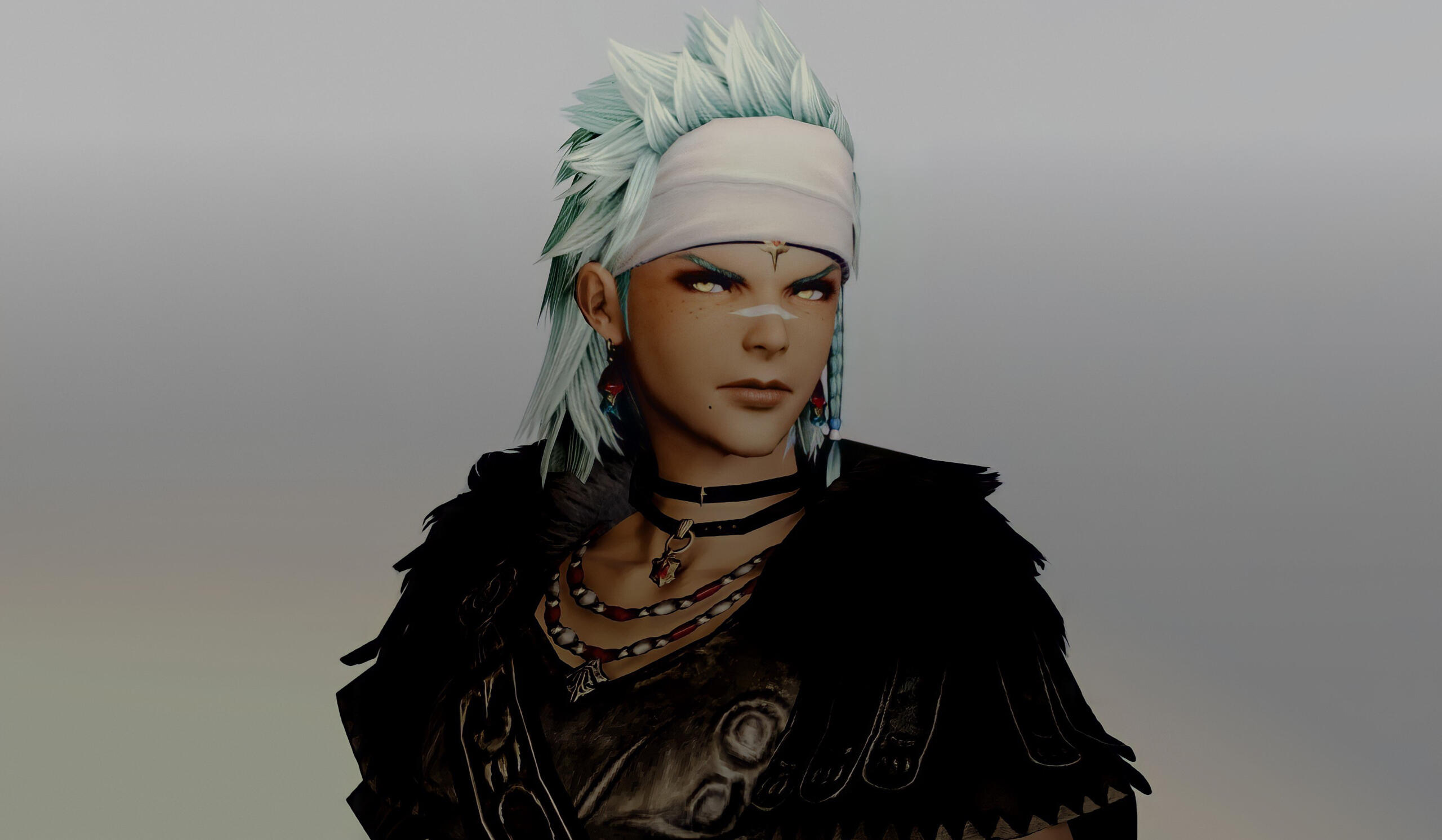 This woman prefers to fight with two blades, the mark that drags from underneath her eye represents her stealth and curves towards the side her mouth, signifying her lethal nature. The dagger underneath that scales across her cheek and points to her nose represents her shy, stoic personality that is hidden and often overlooked by her deadly fighting style.The only Kanza who has not executed her trials in full was that of Minya Kanza. Growing up in Lower La Noscea, Minya could not face her Kanza matriarch for the final trial, nor could she conquer the Temple of The Fist . Nashoba Kanza ( her grandmother ) still lives in Ala Gannha and has not had the chance to meet her granddaughter.However, Minya Kanza was deemed a grown woman worthy of Kanza tattoos by her father, Kuruk, who witnessed Minya’s trials personally at the age of twelve. She was able to complete some sort of Monk training ( albeit not the best ) from her father, she hunted and she survived a night in the wild alone.Kanza men are not supposed to tattoo their women, however— because of the fact that Minya had no motherly figure to call her own— Kuruk took it upon himself to continue family tradition and mark his daughter as a full fledged Kanza. Due to this fact, Nashoba has shunned Kuruk and banished him from coming back to the village.Kanza men are also gifted the Mark of The Soul, however for them, they only receive their mark after defeating their patriarch in hand to hand combat starting at age ten; this process could take several years if the boy is unsuccessful. For Kuruk Kanza, it took him till age nineteen, and as for his younger brother Kwahu, he received his prominent markings at age fourteen.Since the women are capable of handling the family’s situations, the men are often found farming, hunting and battling as back up with their women who lead the charge.